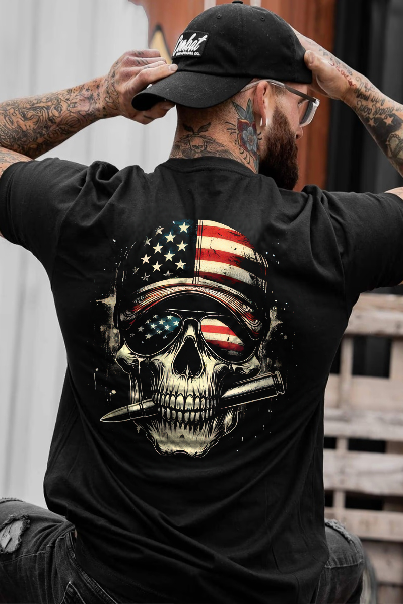 | Product Name | American Flag Skull Printed Men's T-Shirt | ||