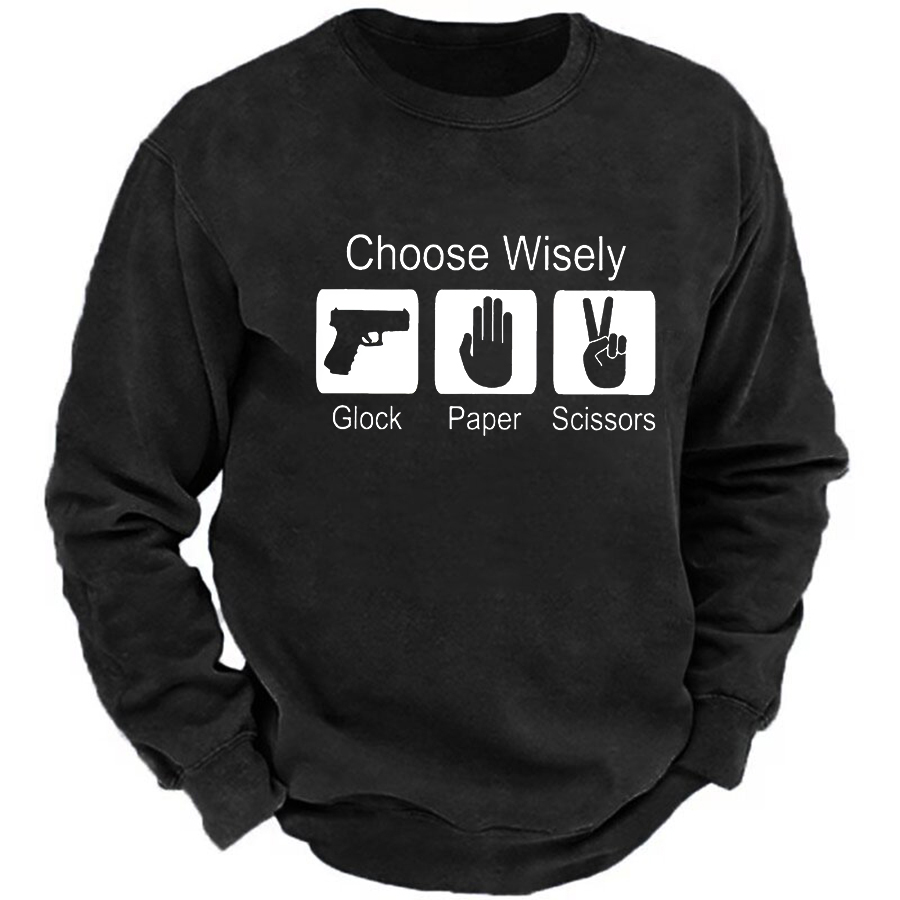 | Product Name | Choose Wisely Glock Paper Scissors Printed Men's Sweatshirt | ||||