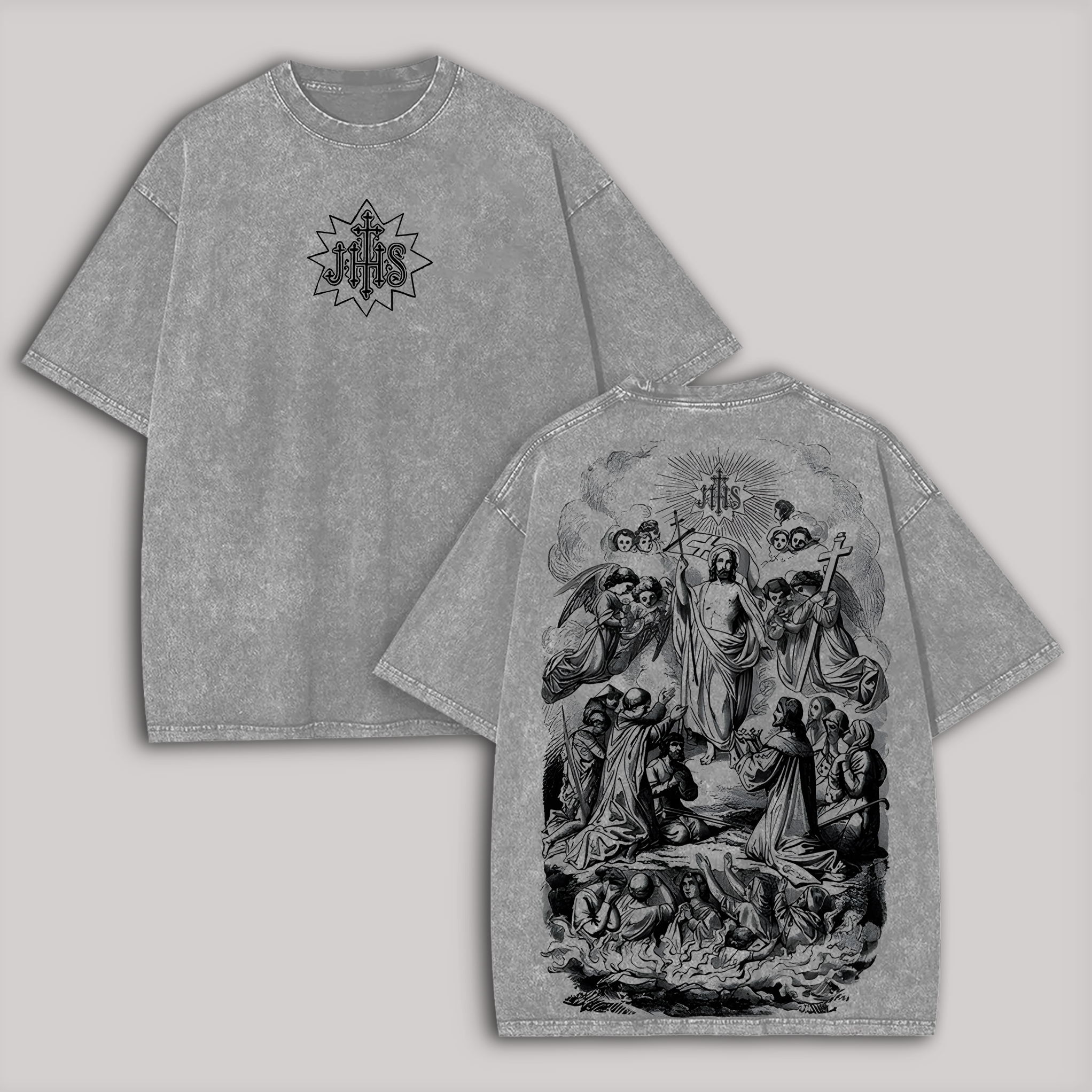 Product Name Community of Saints with Resurged Jesus Printed Unisex Washed T-Shirt