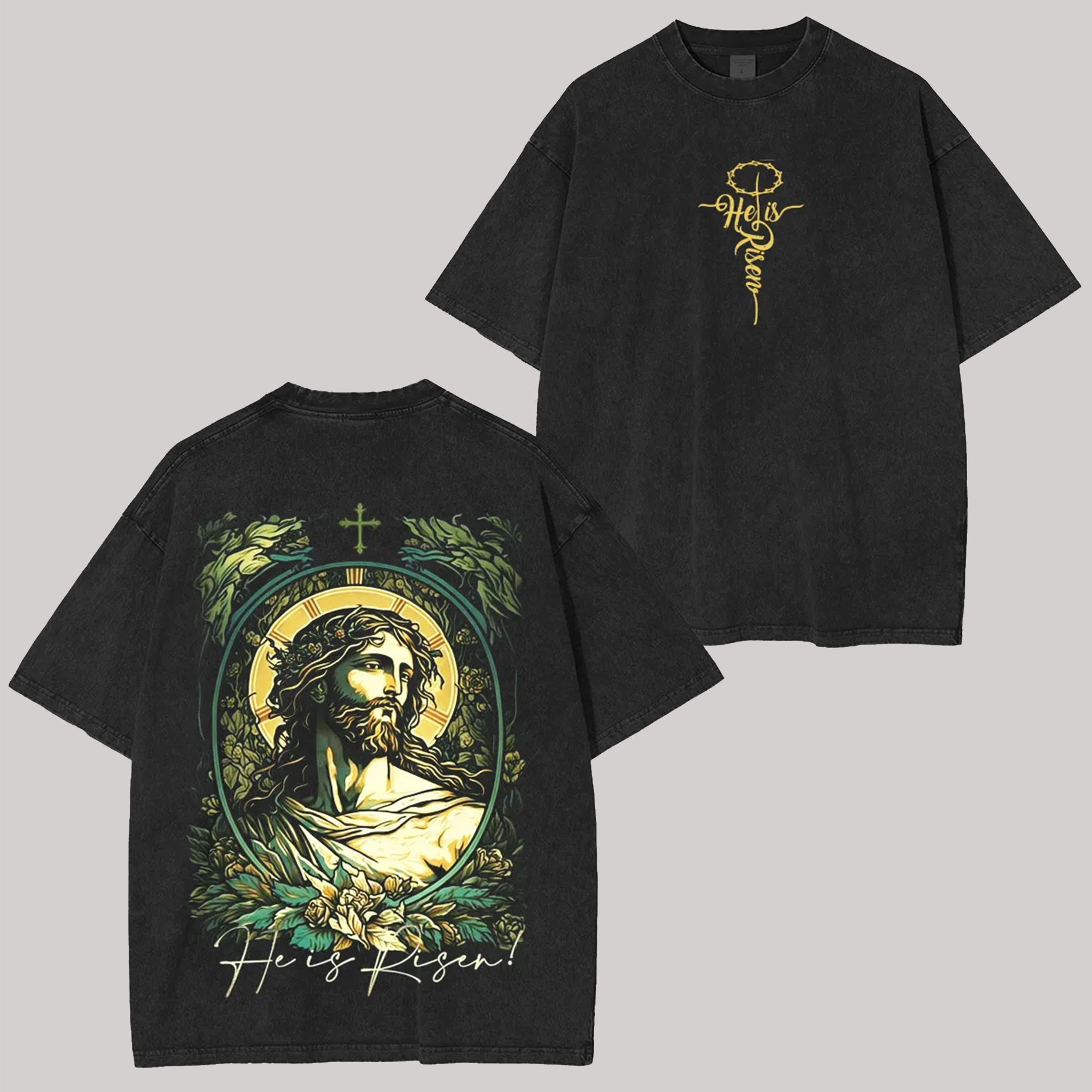 | Product Name | He Is Risen Jesus Printed Unisex Washed T-Shirt | ||