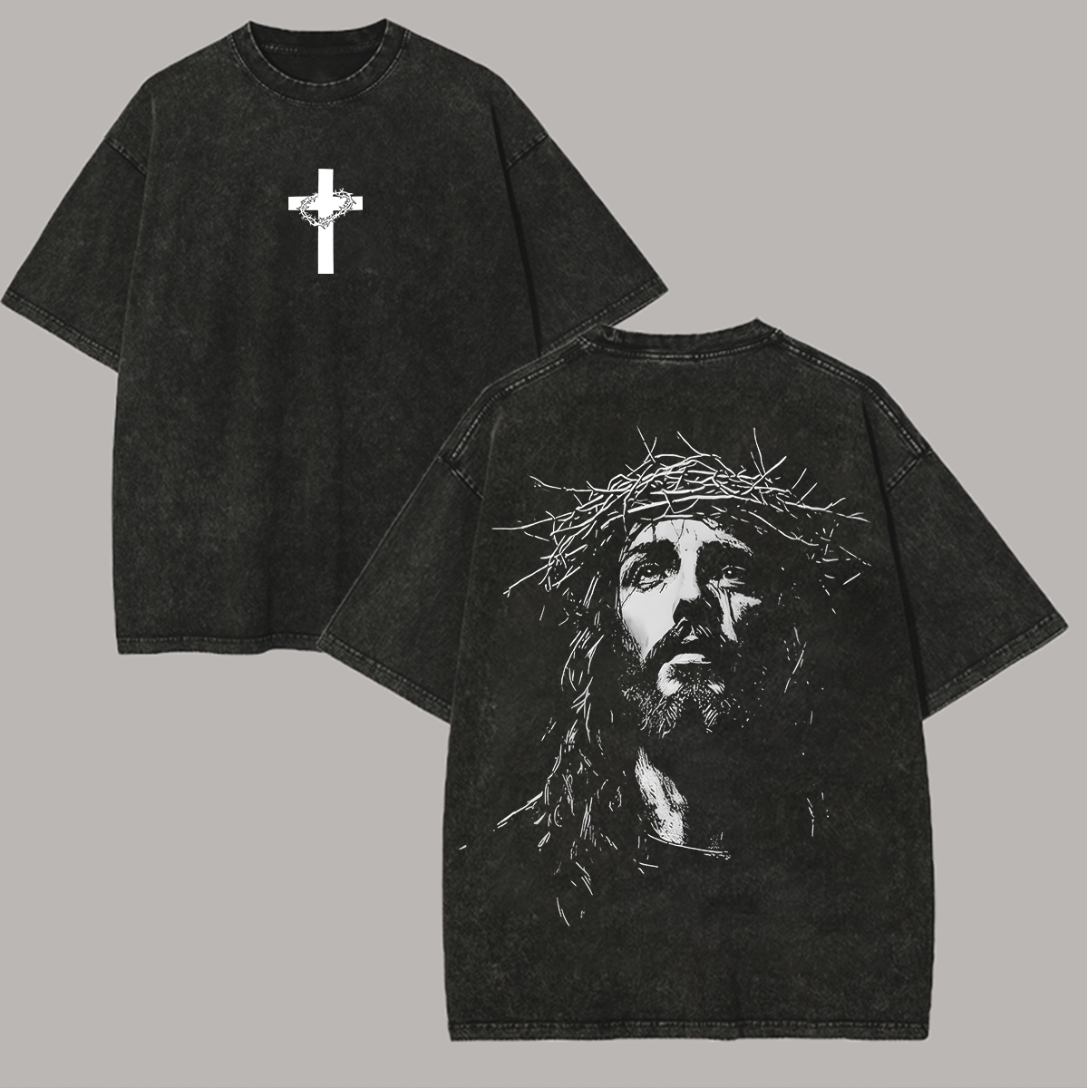 Jesus Crown Of Thorns Printed Unisex Washed T-Shirt |