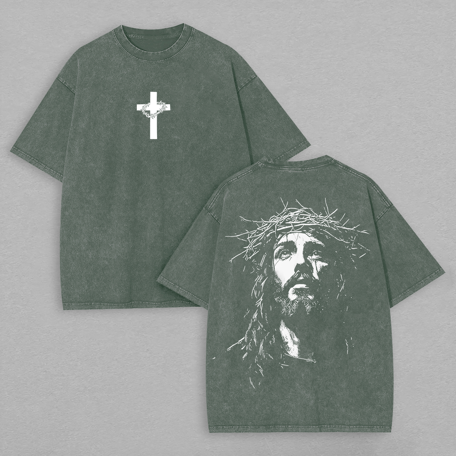 Jesus Crown Of Thorns Printed Unisex Washed T-Shirt |