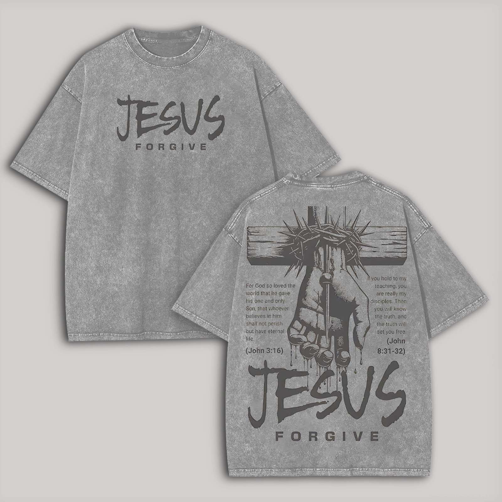 Jesus Forgive Printed Unisex Washed T-Shirt |