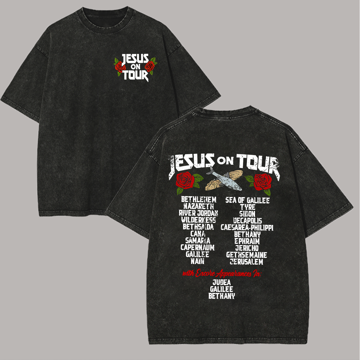 Jesus On Tour Printed Unisex Washed T-Shirt