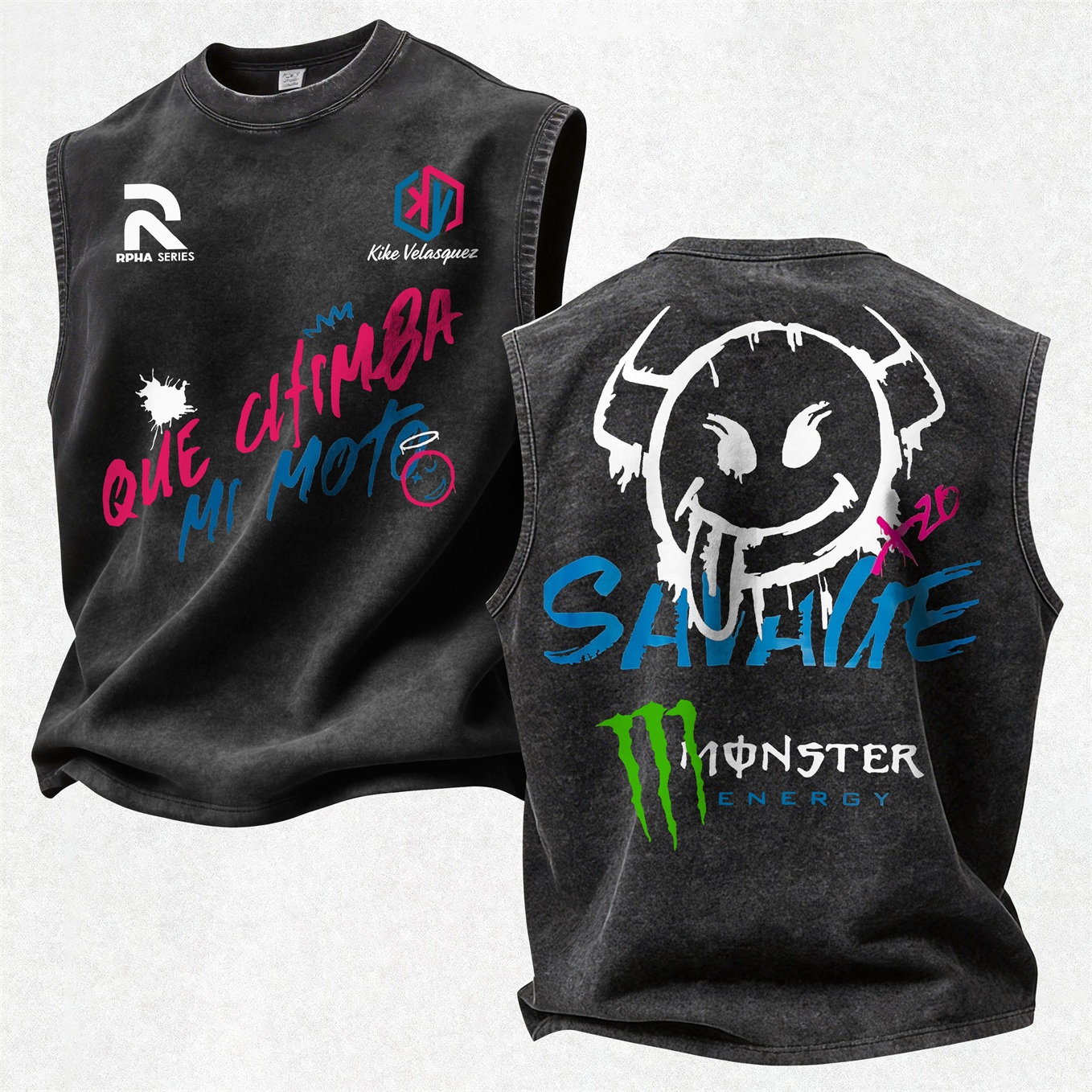 Kike Velasquez Savage Monster Energy Printed Men's Washed Vest