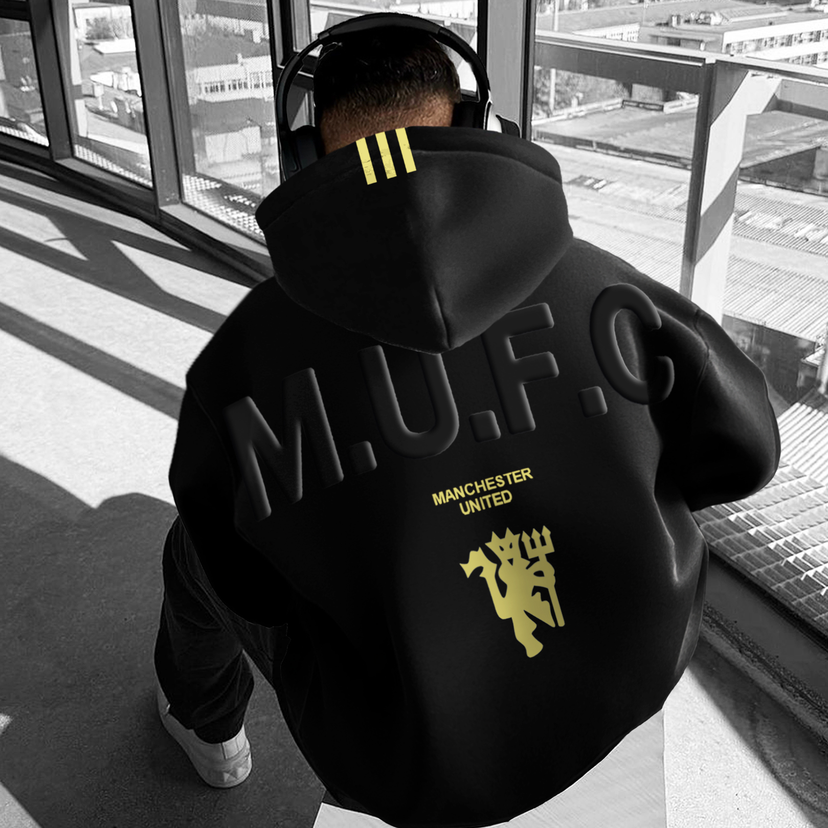 Manchester United Printed Fleece-lined Unisex Hoodie