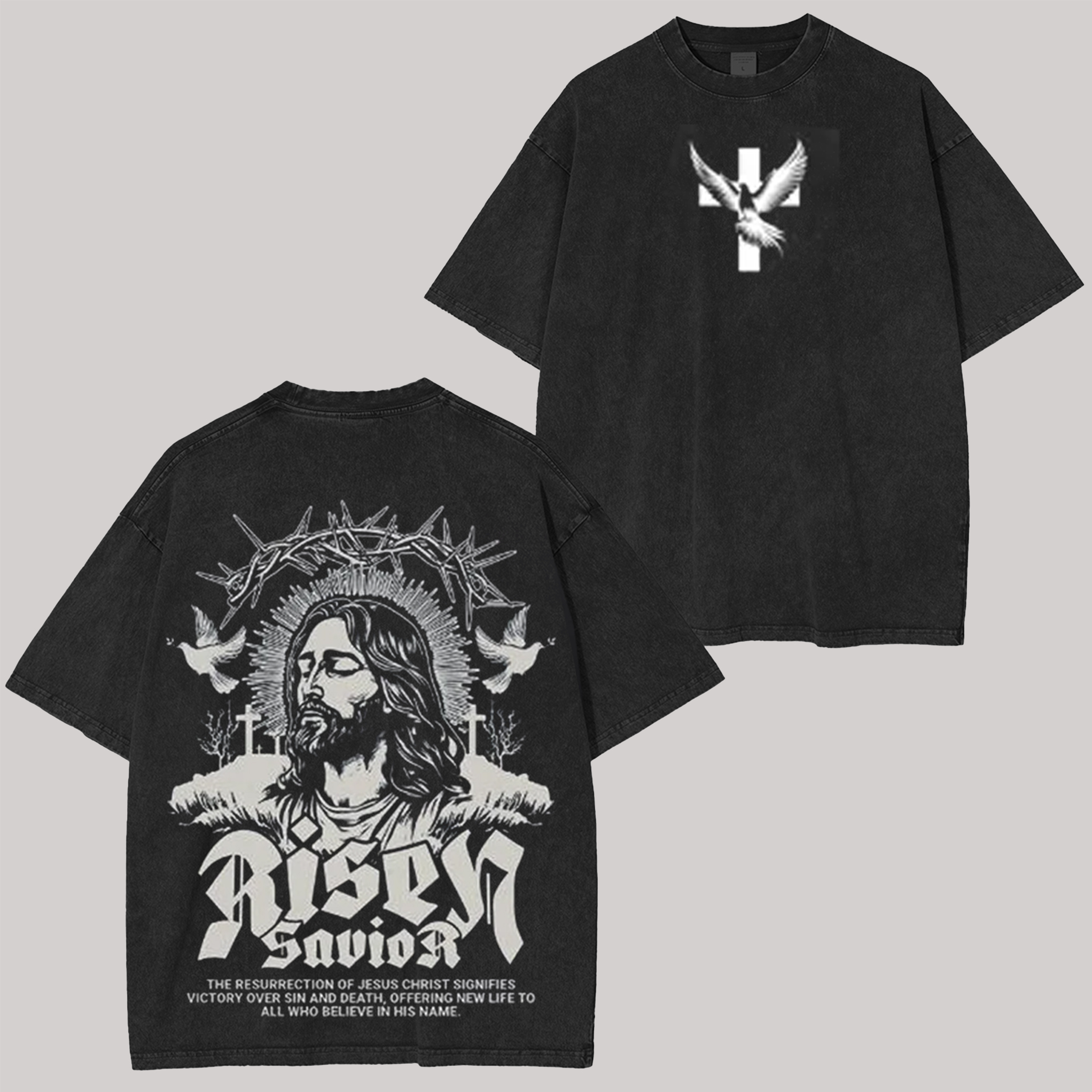 Product Name Risen Savior Jesus Printed Unisex Washed T-Shirt