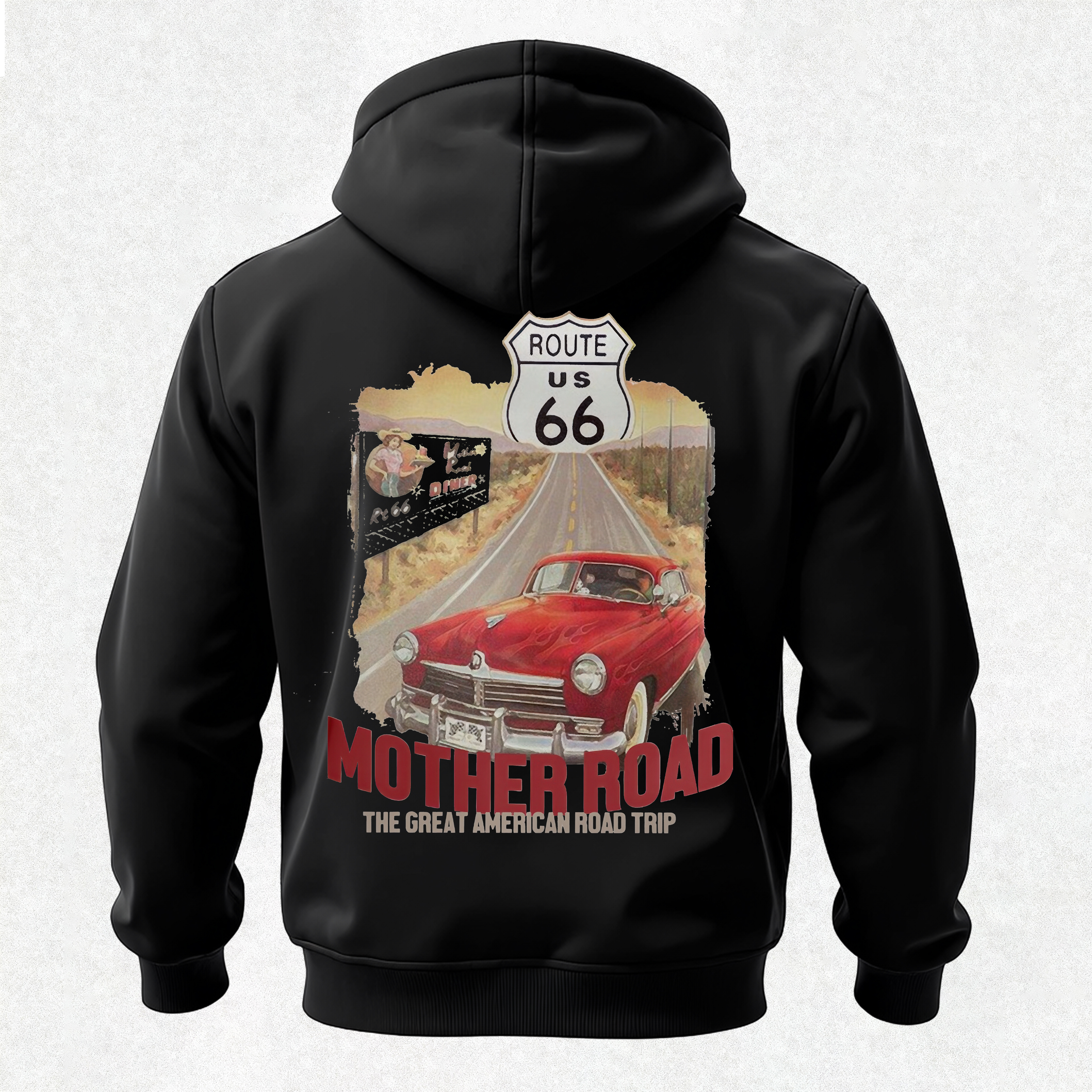 Route 66 Mother Road The Great American Road Trip Printed Fleece-lined Unisex Pocketless Hoodie |