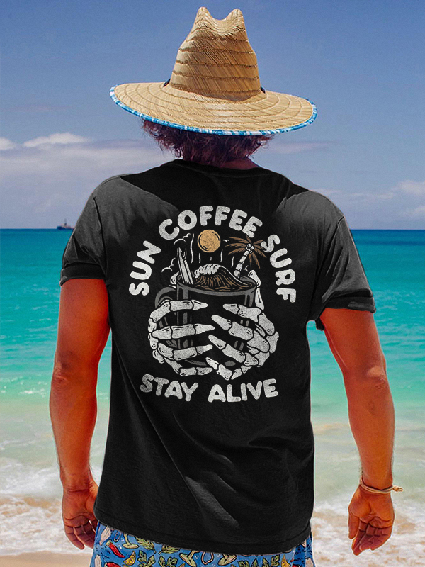 Sun Coffee Surf Stay Alive Skull Printed Men's T-shirt