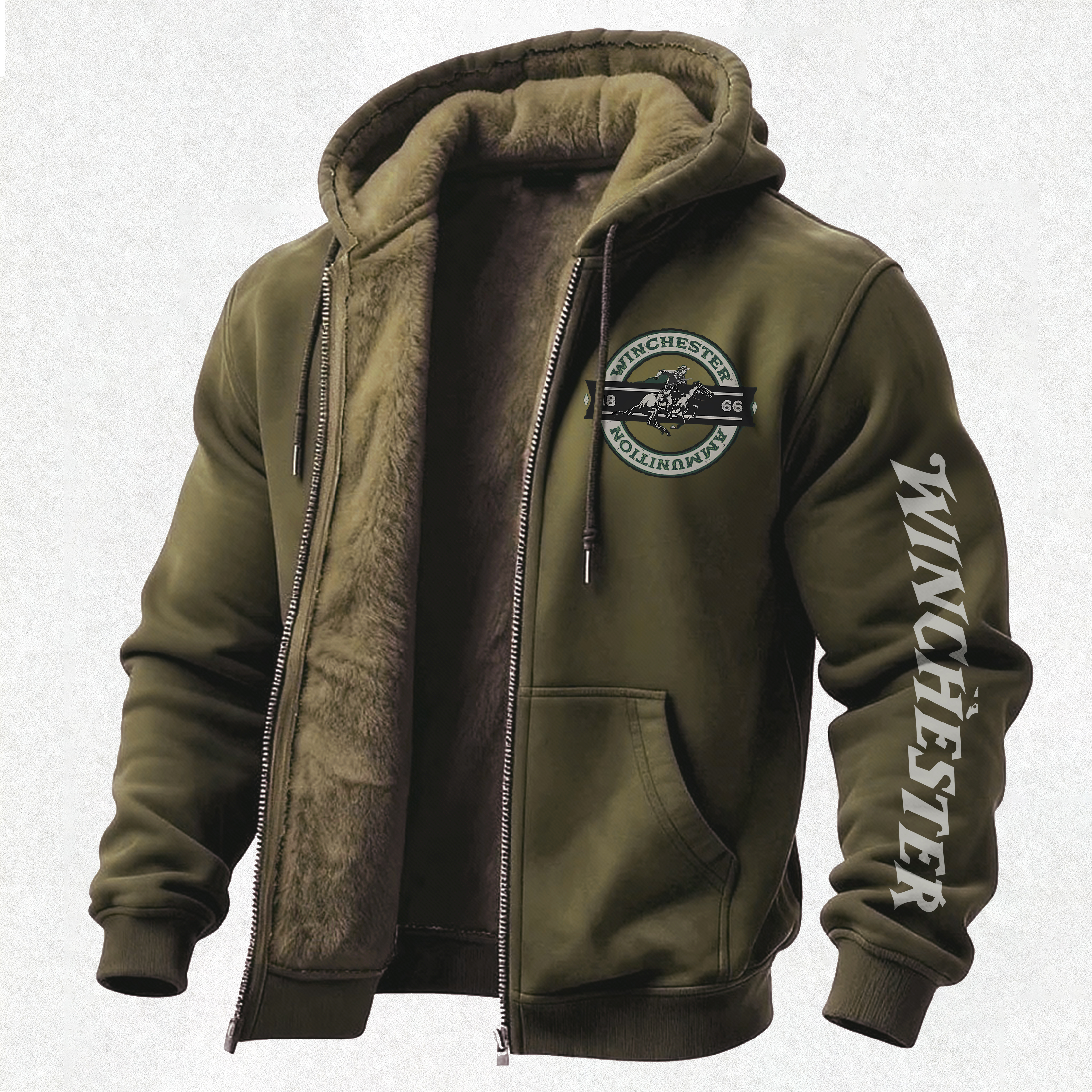 Winchester Ammunition Printed Zippered Hooded Fleece Cardigan